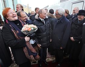 Премьер-министр РФ Владимир Путин на отправке первого скоростного поезда "Allegro" по маршруту Санкт-Петербург-Хельсинки.