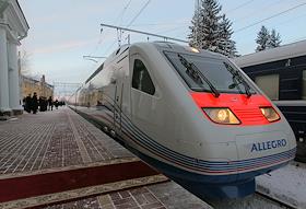 Прибытие из Хельсинки первого скоростного экспресса "Аллегро" на вокзал Выборга.
