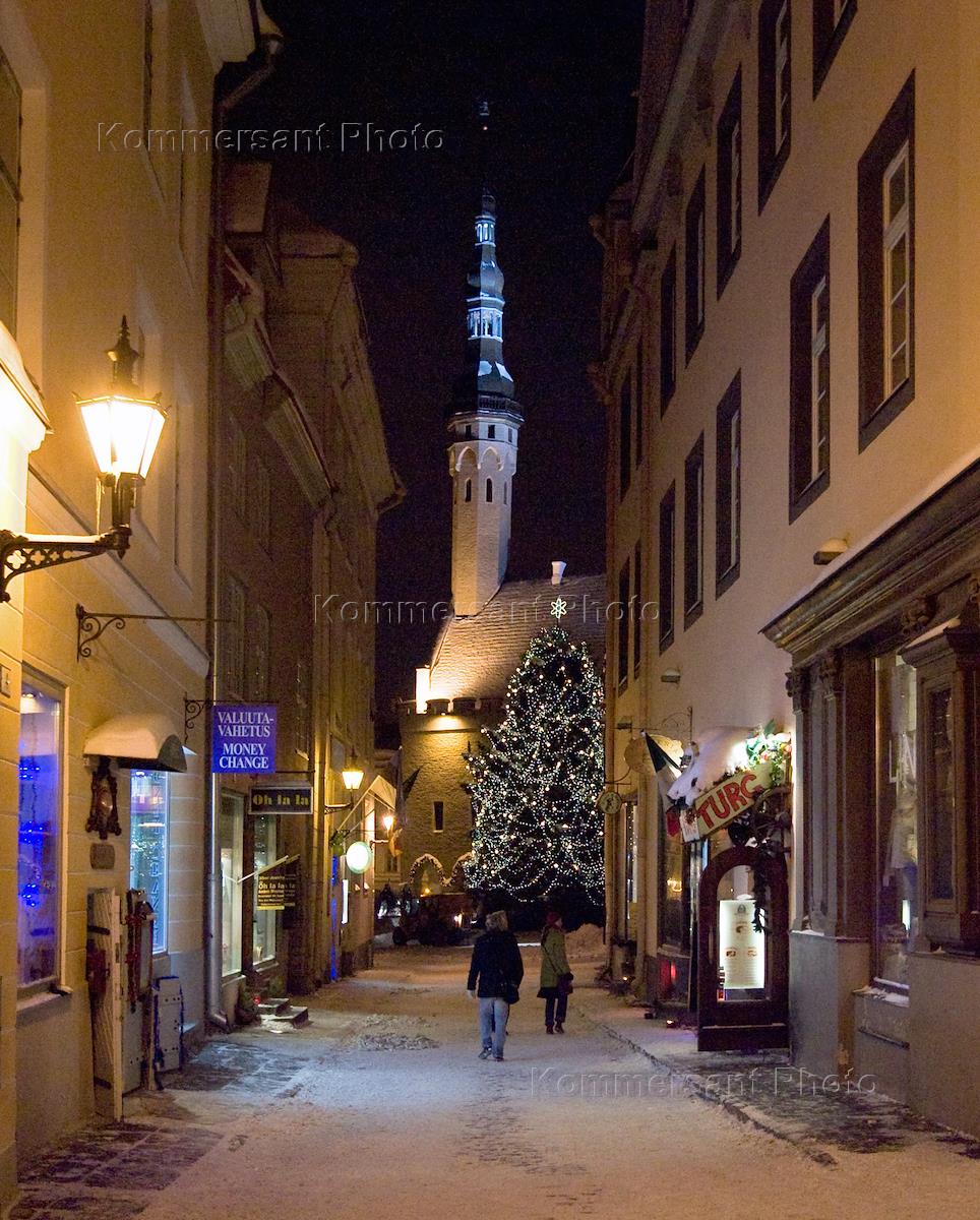 Виды Таллина. Ресторан Olde Hansa. Вид на башню городской ратуши, на вершине которой располагается…
