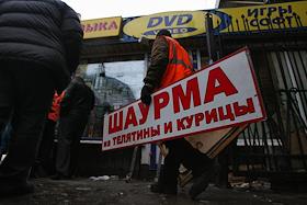 Сотрудники милиция во время сноса незаконных построек на территирии Ленинградского вокзала.