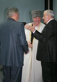Председатель Координационного центра мусульман Северного Кавказа (КЦМСК) Исмаил Бердиев (в центре)…