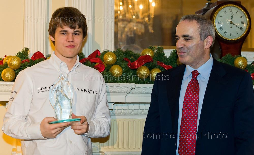 Норвежский шахматист Магнус Карлсен (слева) и гроссмейстер Гарри Каспаров (справа) во время 2-го…
