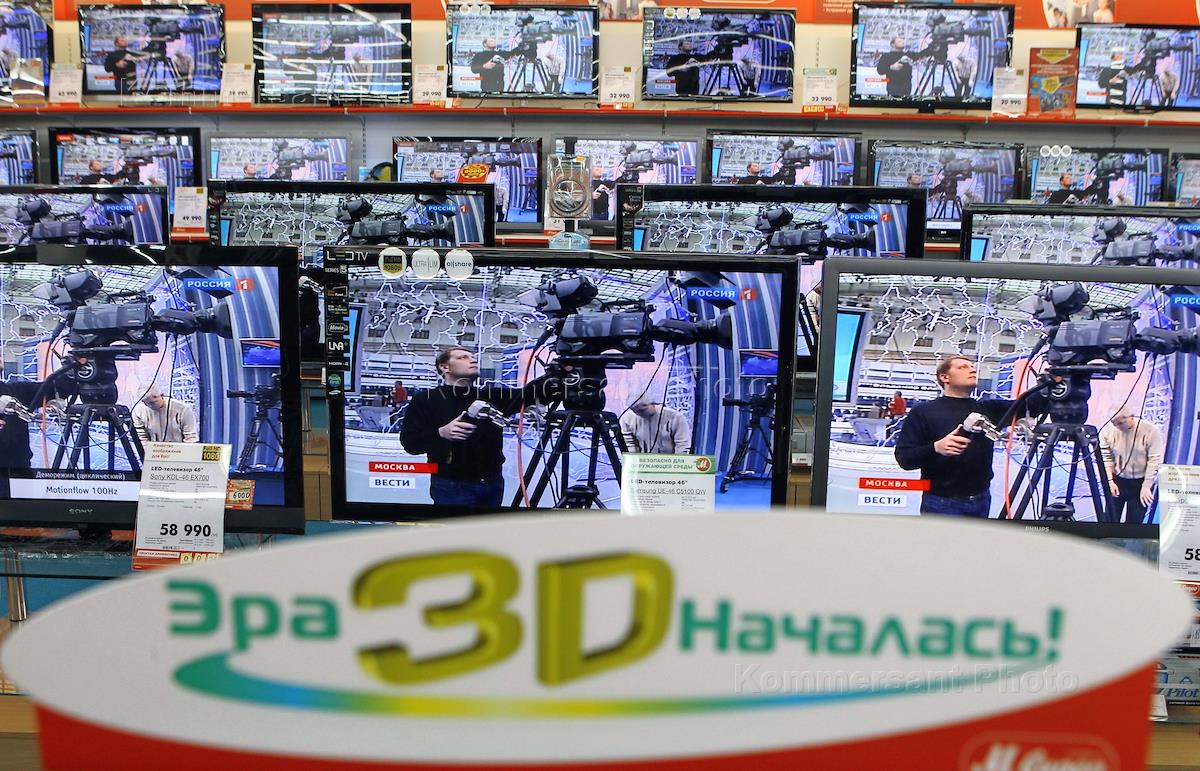 Экономика и бизнес Специальная программа "Разговор с Владимиром Путиным. Продолжение" на экранах телевизоров в магазине бытовой техники и электроники "М.Видео".