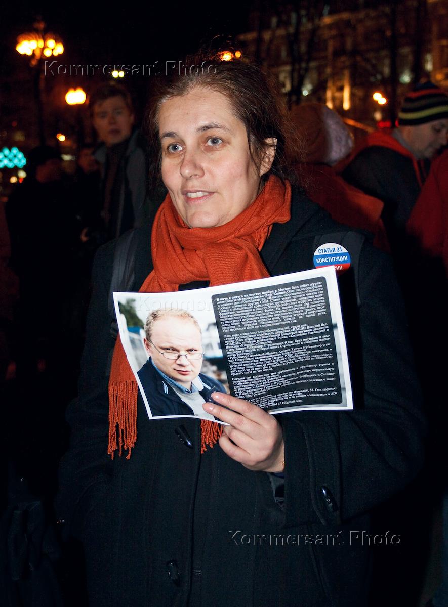 Пикет с требованием найти заказчиков нападения на журналиста ИД "Коммерсантъ" Олега Кашина на Пушкинской площади.