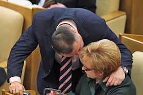Председатель комитета Государственной думы России по охране здоровья Ольга Борзова (справа) на…