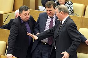 Член комитета Государственной думы России по бюджету и налогам Владимир Пехтин (слева) и…