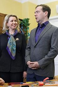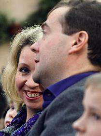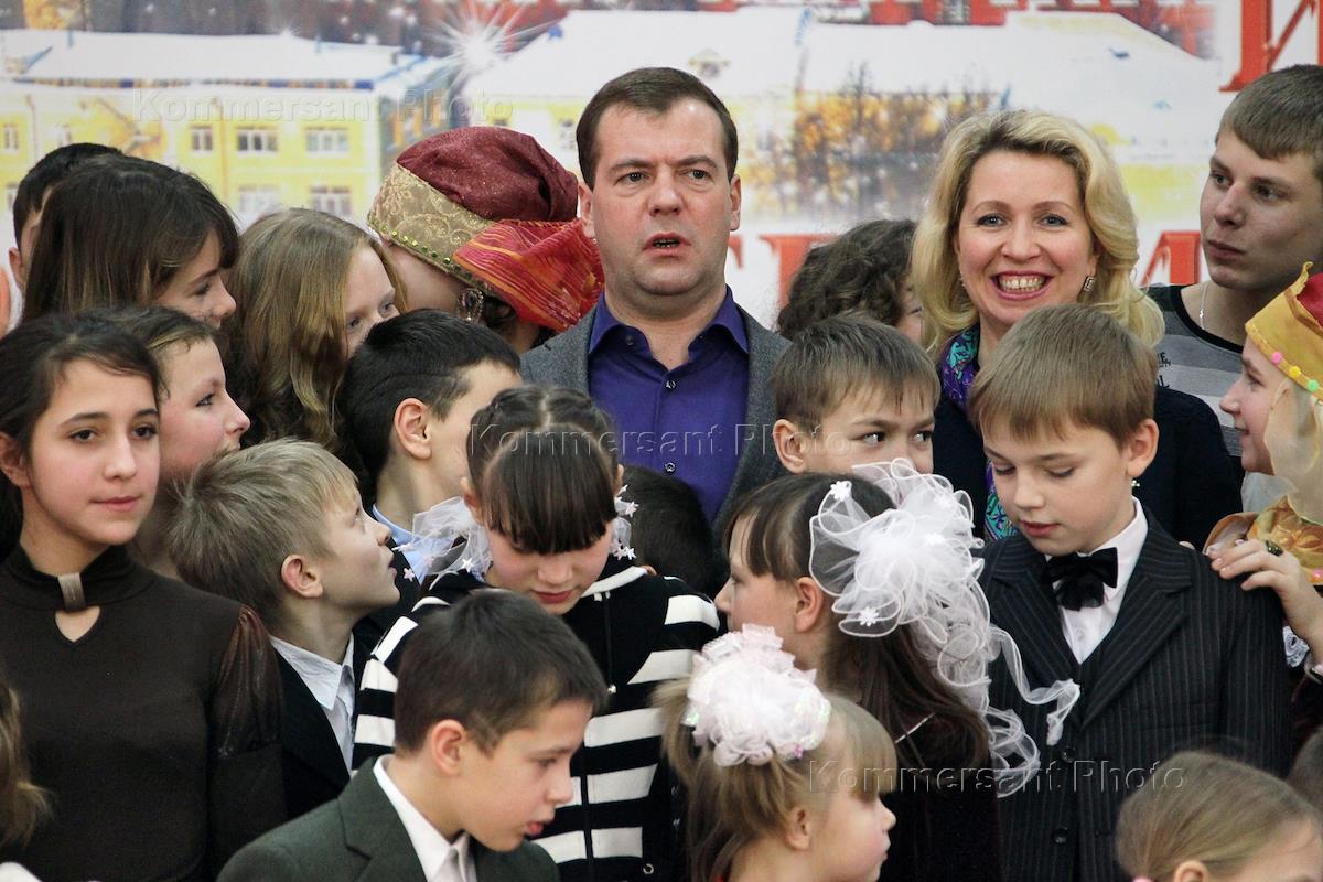 Президент России Дмитрий Медведев (справа) с супругой Светланой (слева) поздравили воспитанников…