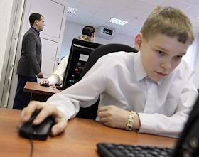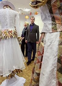 Президент России Дмитрий Медведев (слева) во время посещения детского дома №3 города Иваново.…
