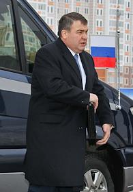 Министр обороны России Анатолий Сердюков во время осмотра жилья для военнослужащих в микрорайоне…