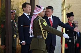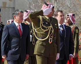Король Иордании Абдалла II (слева) и президент России Дмитрий Медведев (справа) во время церемонии…