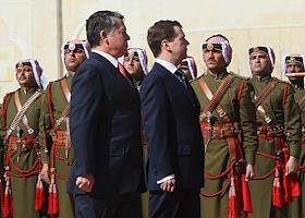 Президент России Дмитрий Медведев (слева) и король Иордании Абдалла II (справа) провели двусторонние…