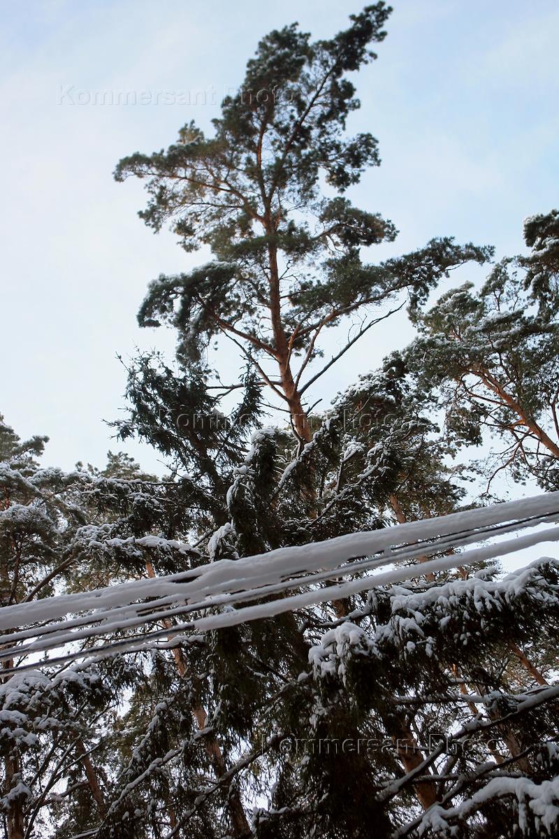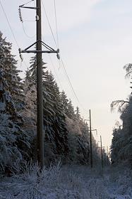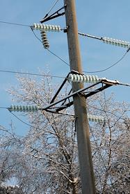Жанровая фотография. Заснеженные провода линии электропередач.