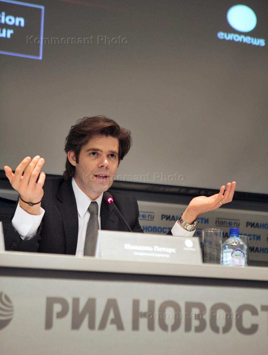 Генеральный директор канала Euronews Микаэль Петерс на пресс-конференции в РИА "Новости".