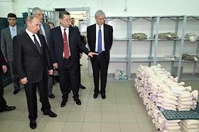 Председатель правительства России Владимир Путин (в центре) во время посещения Центрального…