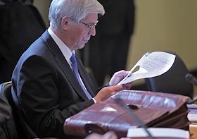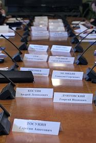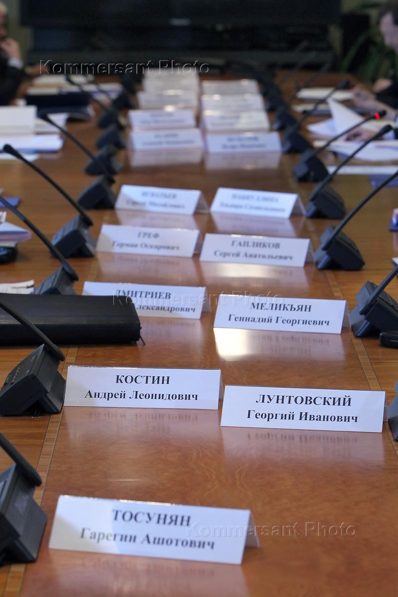 Таблички на столе с именами участников совещания по стратегии развития банковского сектора до 2015…