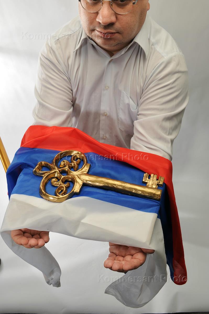 Обложка журнала "Деньги". Флаг России и ключ.