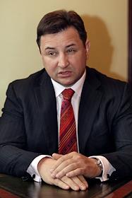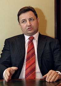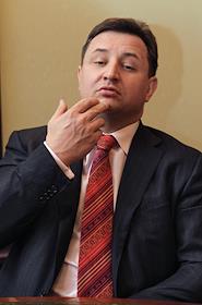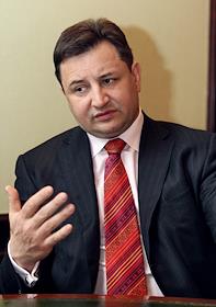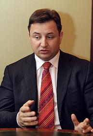 Председатель правления Росбанка Владимир Голубков во время интервью.