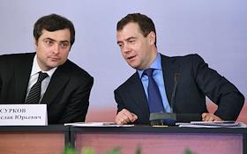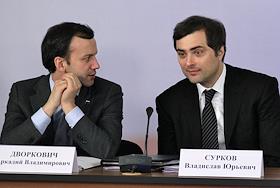 Первый заместитель руководителя администрации президента России Владислав Сурков (слева) и президент…