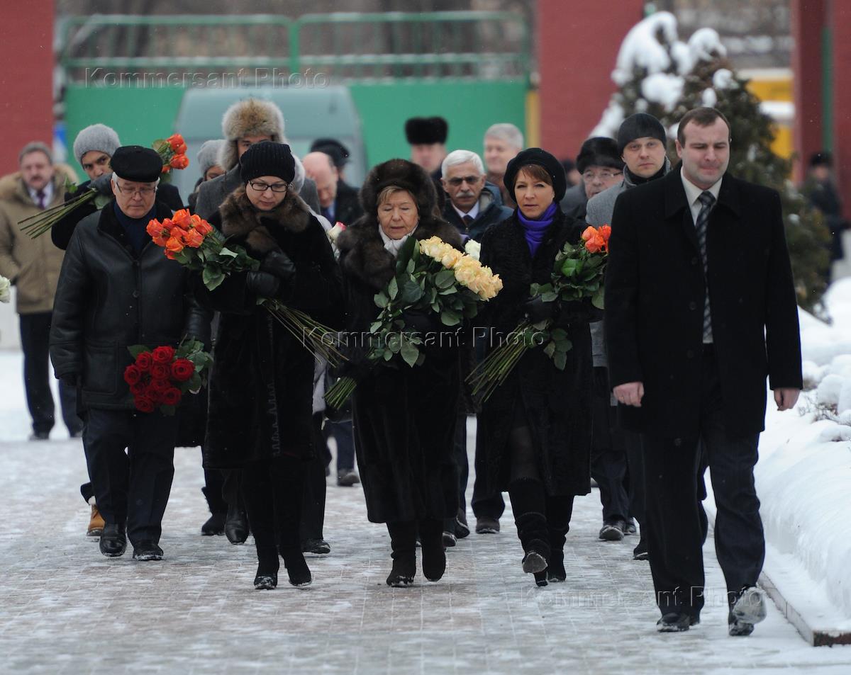 Светская жизнь Возложение цветов представителями партии "Правое дело" к могиле Бориса Ельцина в день 80-летия со дня рождения первого президента России на Новодевичьем кладбище.