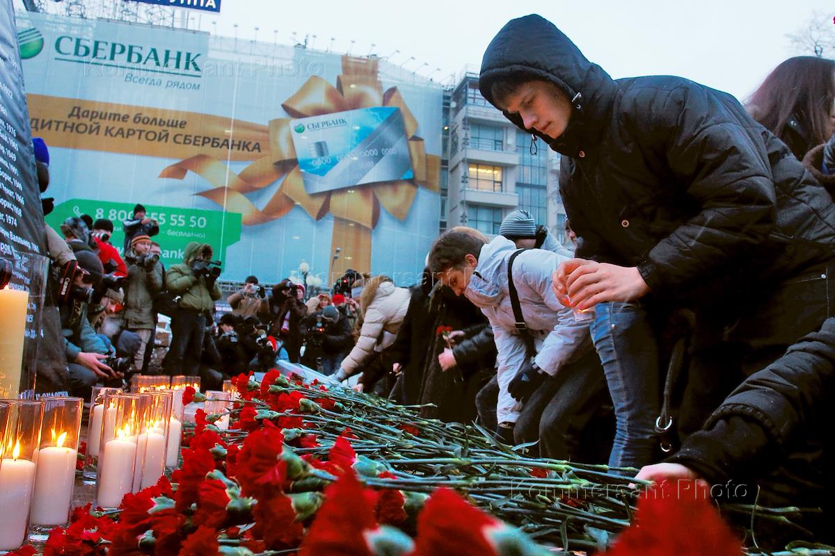 Политика Митинг памяти погибших в результате теракта в аэропорту Домодедово, организованный активистами "Молодой гвардии "Единой России". Митинг прошел на Пушкинской площади.