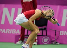 Российская теннисистка Мария Шарапова во время матча чемпионата мира по теннису среди женских…