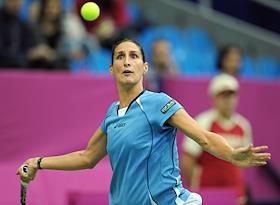 Французская теннисистка Виржини Раззанон во время матча чемпионата мира по теннису среди женских…