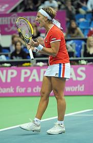 Французская теннисистка Ализе Корне во время матча чемпионата мира по теннису среди женских сборных…
