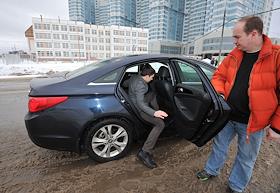 Тест-драйв автомобиля Hyundai Sonata. Посадка пассажира в машину.