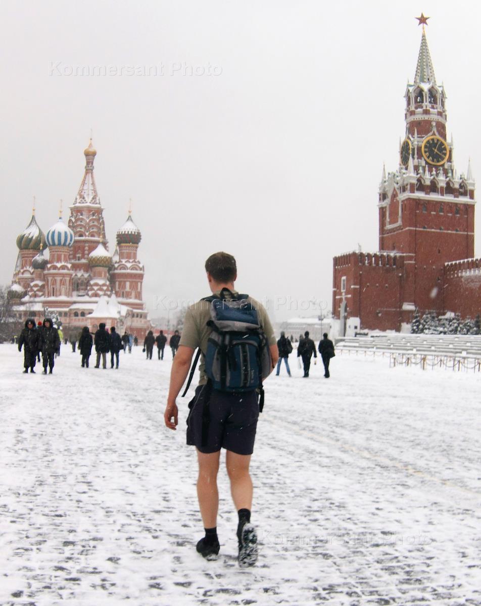 Жанровая фотография. Молодые люди фотографируются на Красной площади.