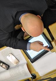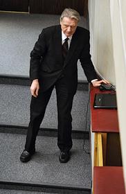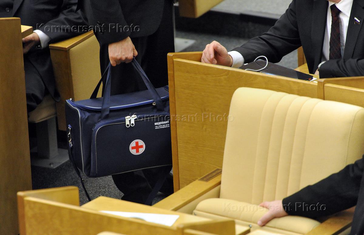 Депутат с сумкой на пленарном заседании Государственной Думы России.