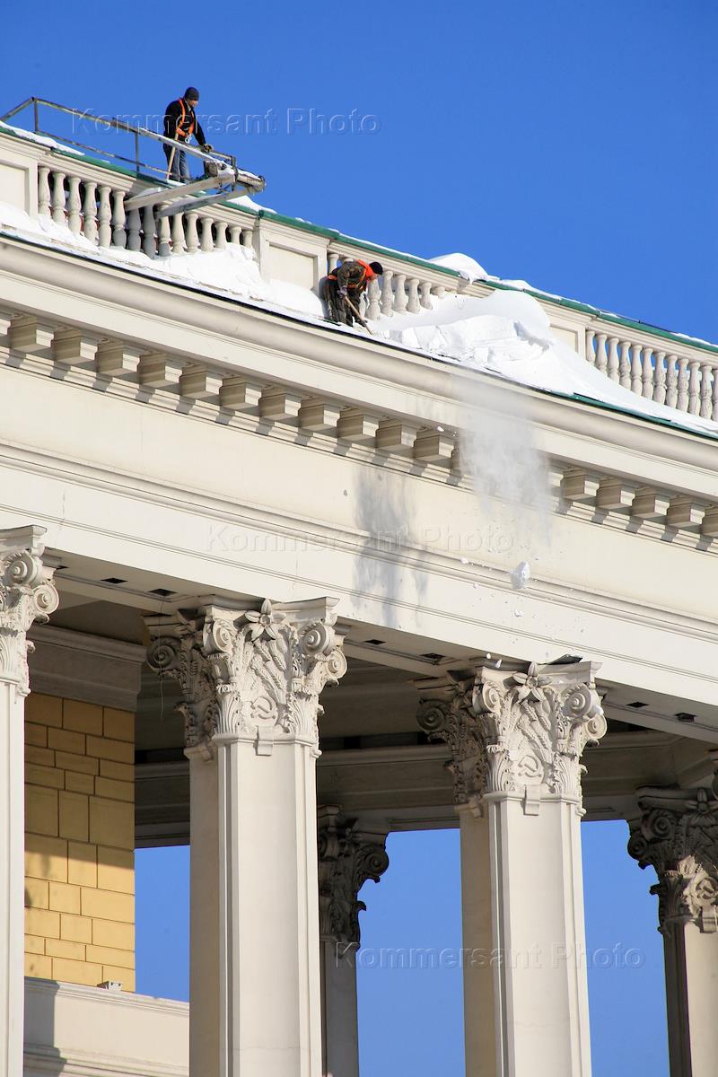 Жанровая фотография. Чистка крыши Театра Российской Армии от снега.
