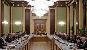 Председатель правительства РФ Владимир Путин во время совещания в Белом Доме.