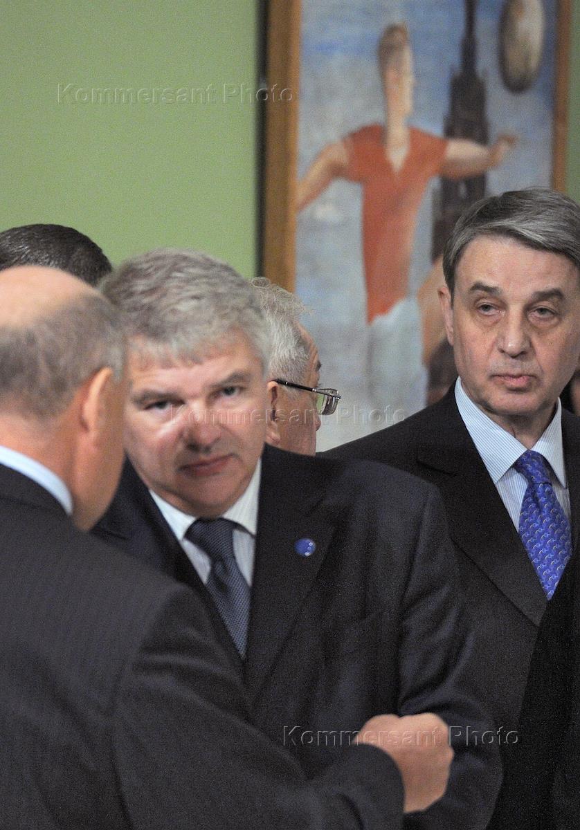 Минстр иностранных дел России Сергей Лавров Слева) и премьер-министр Италии Сильвио Берлускони…