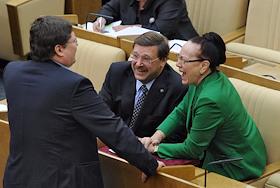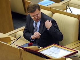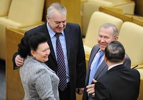 Член комитета Государственной думы России по обороне Артур Чилингаров (слева) на заседании Госдумы.