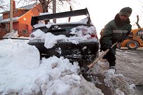 Уборка снега на улице Врубеля возле здания издательского дома (ИД) "Коммерсантъ".
