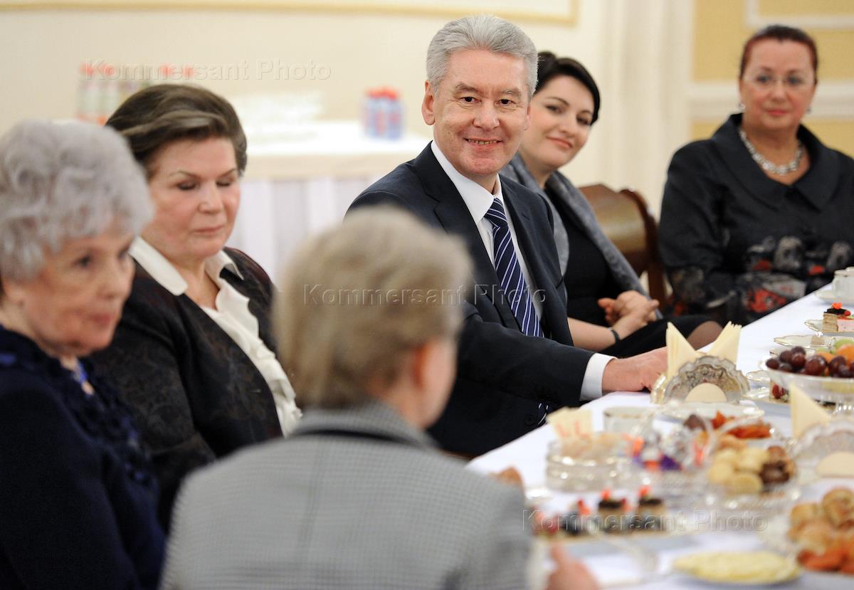 Мэр Москвы Сергей Собянин (в центре) на встрече с заслуженными женщинами столицы в Колонном зале…
