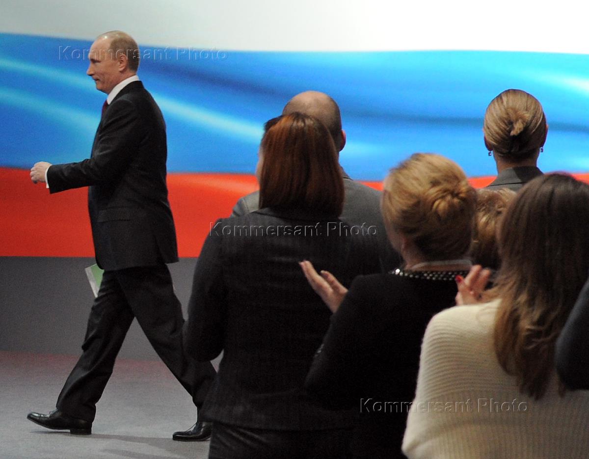 Председатель правительства России Владимир Путин (в центре) на межрегиональной конференции партии…