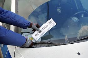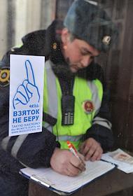 Акция Молодежного патриотического движения "Сталь". Стикер "взяток не беру" на стекле поста ДПС.