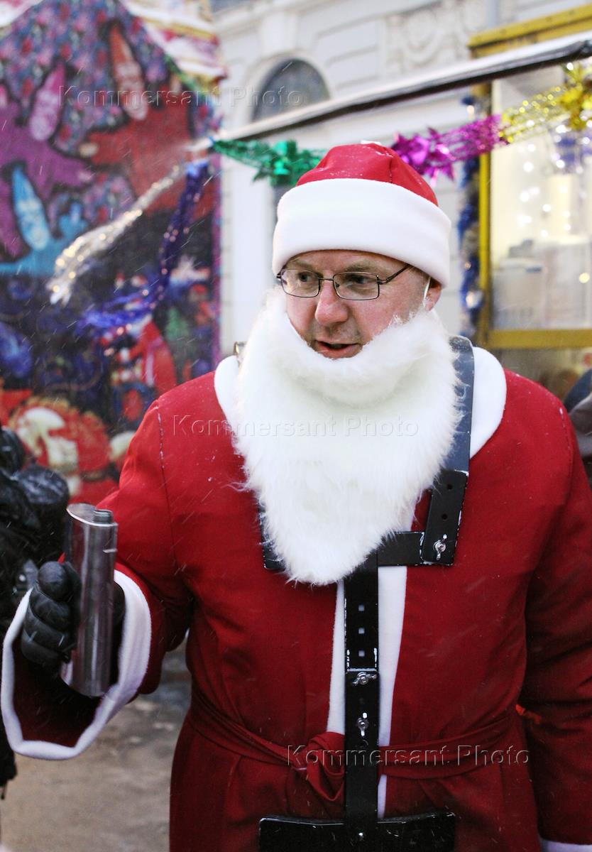 Музыкант духового оркестра в костюме Деда Мороза на церемонии открытия Петербургской рождественской…