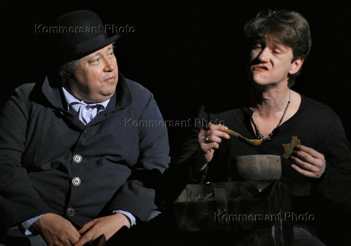 Актер Сергей Степанченко (справа) во время репетиции спектакля "Пер Гюнт" в театре "Ленком".