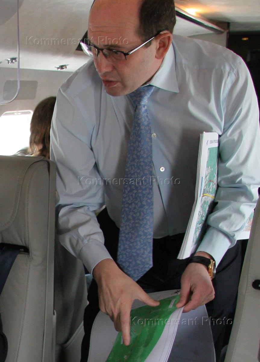 Первый заместитель председателя правления "Автодор" Сергей Кельбах во время вертолетной экскурсии по…