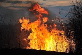 Горящая степь после стрельб на полигоне во время учений артиллерийских войск.