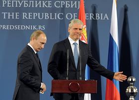 Председатель правительства России Владимир Путин (слева) и президент Сербии Борис Тадич (в центре)…