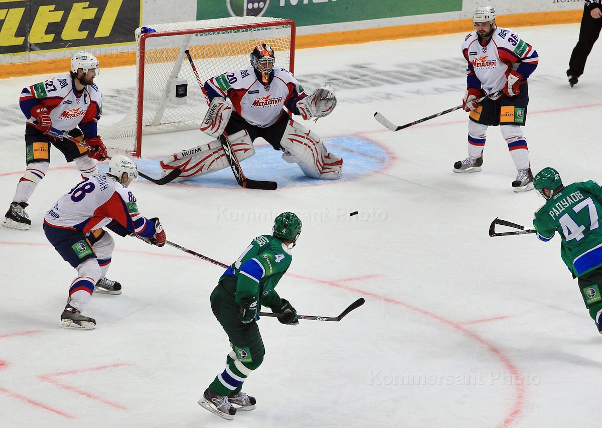 Континентальная хоккейная лига (КХЛ). 1/2 финала. Матч между командами "Салават Юлаев" (Уфа) - "Металлург" (Магнитогорск).