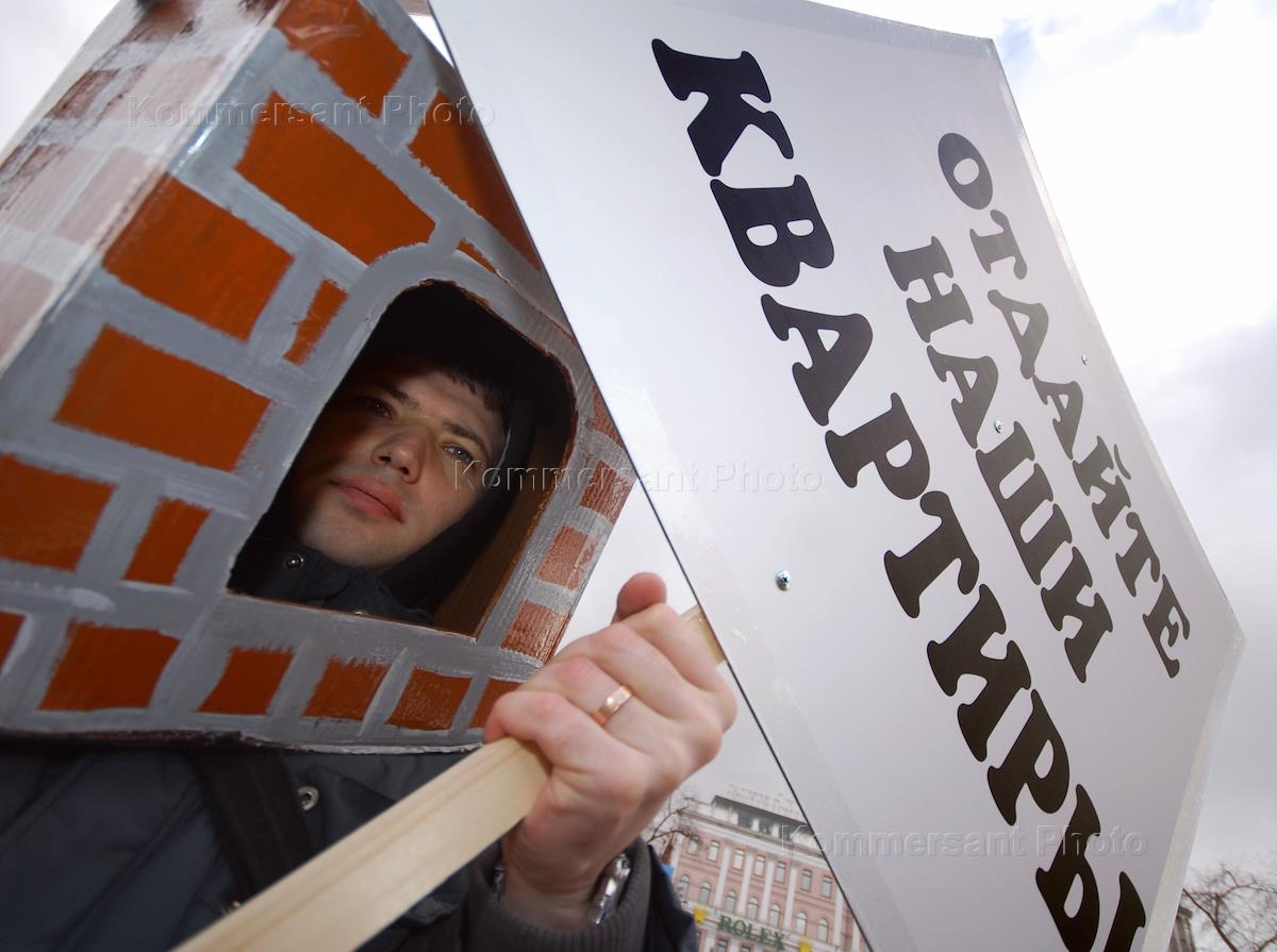 Пикет молодых семей, участников московской социальной программы "Молодой семье - доступное жилье",…