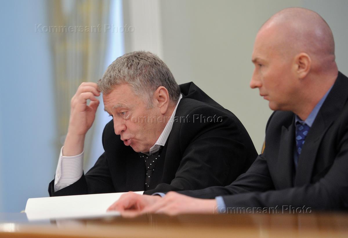 Лидер Либерально-демократической партии России (ЛДПР) Владимир Жириновский (слева) и руководитель…