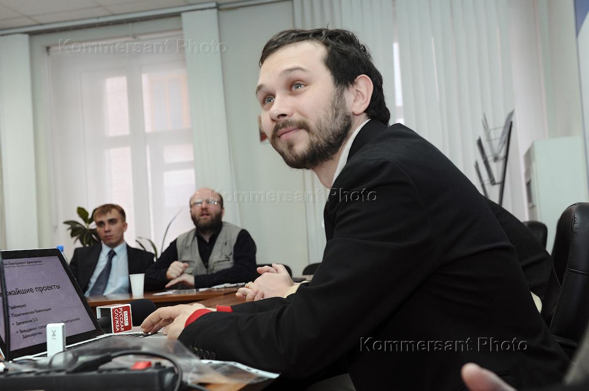 Один из учредителей Фонда Развития Электронной Демокраии Павел Рассудов (справа) на…