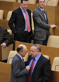 Слева направо: председатель комитета Государственной думы (ГД) России по вопросам местного…