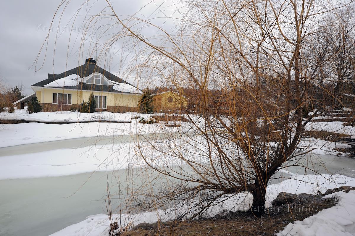 Коттеджный поселок "Юрловские Холмы" на Пятницком шоссе. Декоративный пруд перед одним из жилых…