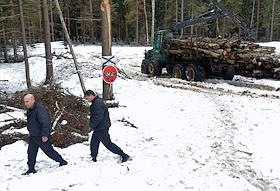Первый заместитель председателя правления "Автодор" Сергей Кельбах (слева) и координатор лесной…